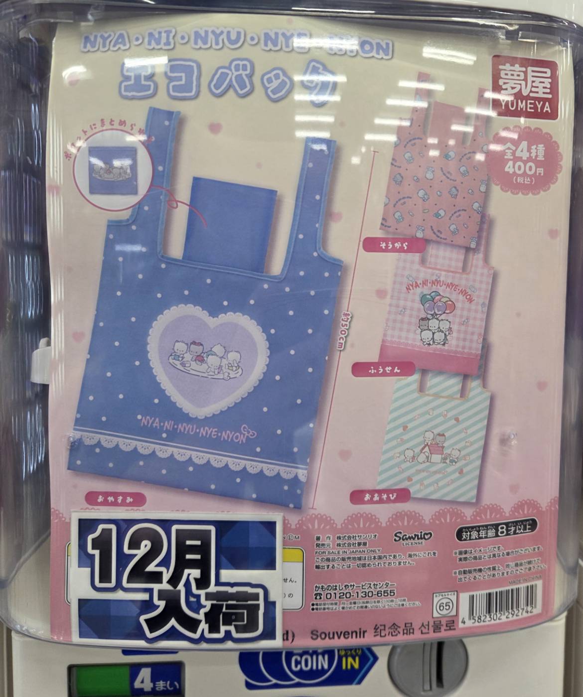 【鹿屋店】新品カプセルトイ入荷情報◇《新品カプセルトイ》 買取・入荷情報 新着情報 鹿屋店 NEW カード ガチャガチャ 2025年12月5日 【鹿屋店 ガチャ 入荷情報】 サンリオ ニャニィニュニェニョンエコバッグ マイメロディ&クロミ ピンクブラックパーティマスコット どこでも一緒 愛犬もふだま キーホルダー コンタック めじるしアクセサリー 神椿市建設中。 コレクションフィギュアrich 入荷致しました♪ ********************