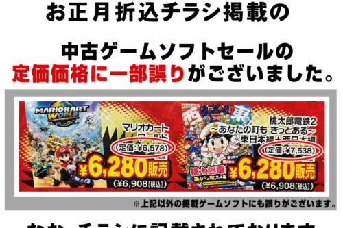 【鹿児島店】ゲーム 買取情報《ゲーム本体・ソフト》 買取・入荷情報 新着情報 鹿児島店 ゲーム 2025年12月29日 【鹿児島店 ゲーム 買取情報】 ゲーム本体・ソフト買取しました! 2025年も沢山のお持込み誠にありがとうございました! 年内の買取は昨日で終了でした。 買取の再開は1/5からとなっております。 2026年も沢山のお持込みお待ちしております♪ ******************** ★〖ゲーム〗最新買取表は👉こちら★