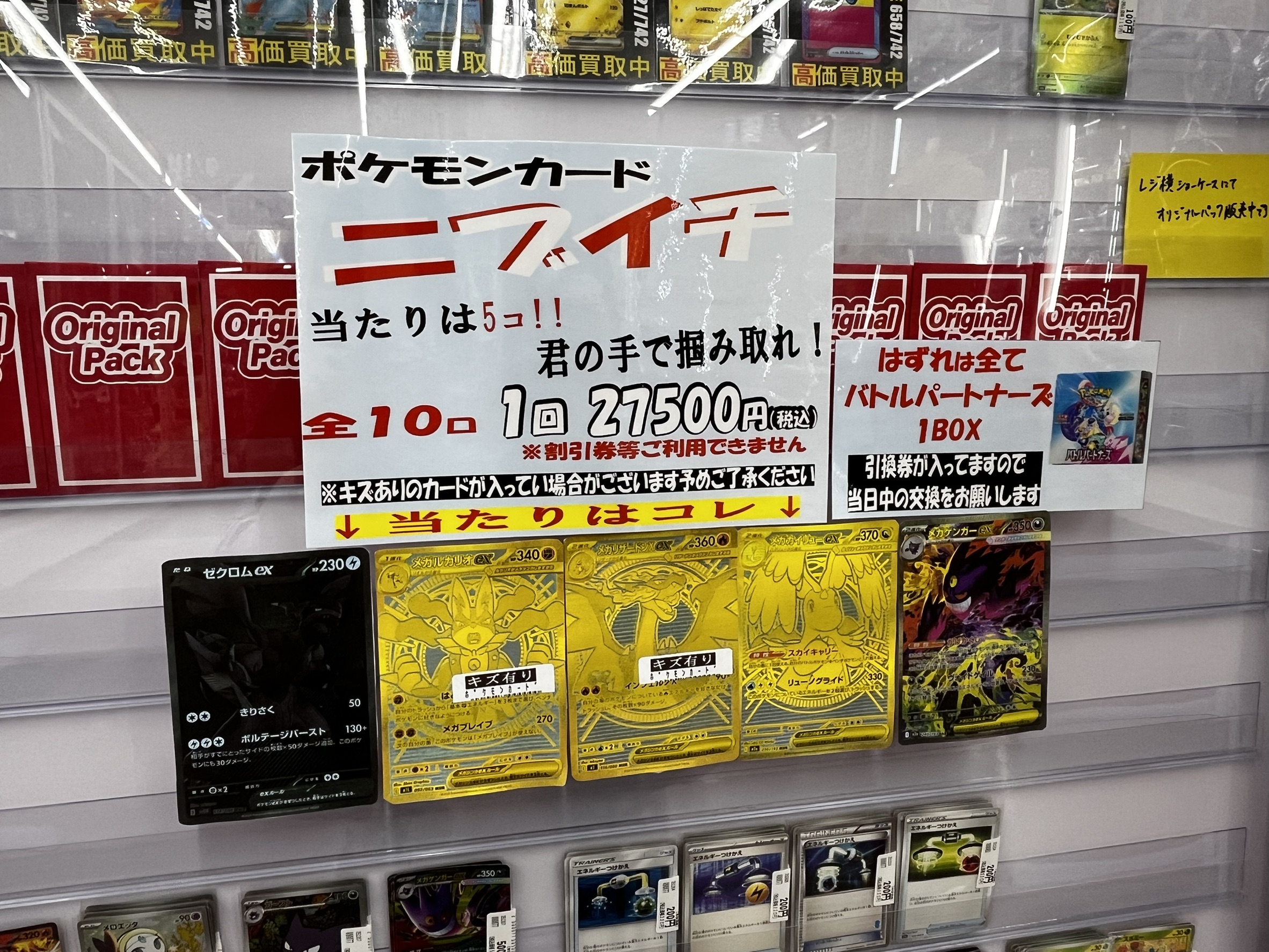 【トレトレ倉庫川内店】カード オリパ情報《カードオリパ》 買取・入荷情報 新着情報 トレトレ倉庫川内店 NEW カード 2026年1月4日 【トレトレ倉庫川内店 カード 買取情報】 オリパ情報‼️ 前回完売御礼だった『ポケモンカード ニブイチ』がまたまた登場! 今回も10口! 当たりにはメガリザードンex MURやメガゲンガーex SARも入っているぞ! 今年最初の運試し‼ 当たりを引き当てろ♪ ********************