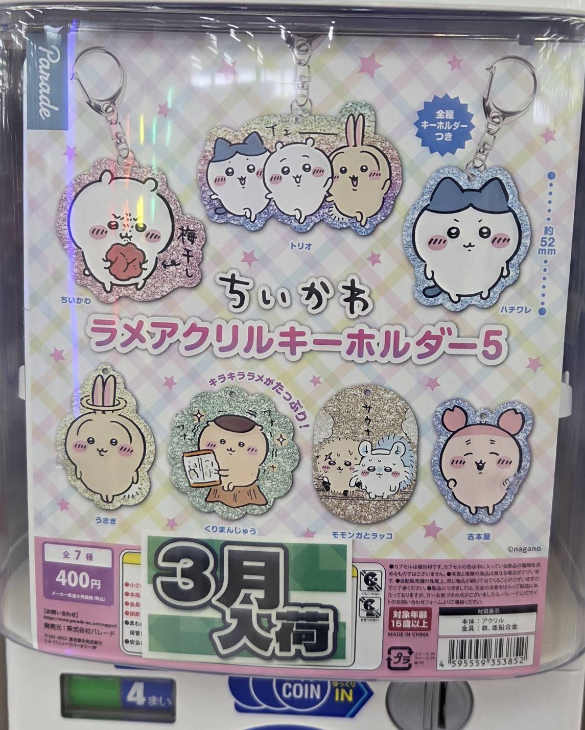 【鹿屋店】新品カプセルトイ入荷情報◇《新品カプセルトイ》 買取・入荷情報 新着情報 鹿屋店 NEW ガチャガチャ 2026年3月13日 【鹿屋店 ガチャ 入荷情報】 ちいかわ ラメアクリルキーホルダー SANKYO 激熱柄・激熱音 プッシュボタンマスコット 入荷致しました♪ ********************