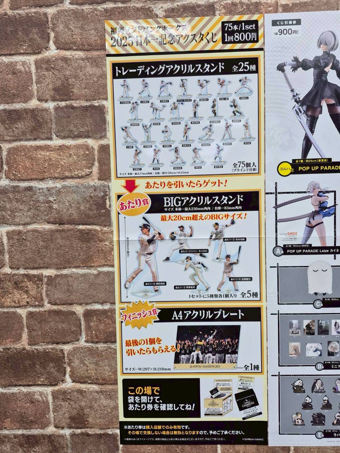 【鹿屋店】一番くじ販売情報◇《一番くじ》 買取・入荷情報 新着情報 鹿屋店 NEW おもちゃ/ホビー 2026年3月20日 【鹿屋店 おもちゃ 買取情報】 ジュウロクホウイ 福岡ソフトバンクホークス 2025年日本一記念アクスタくじ スクウェア・エニックス NieRゲームシリーズ15周年記念くじ 3/20 10時より販売中♪ ※なくなり次第終了です。 ********************