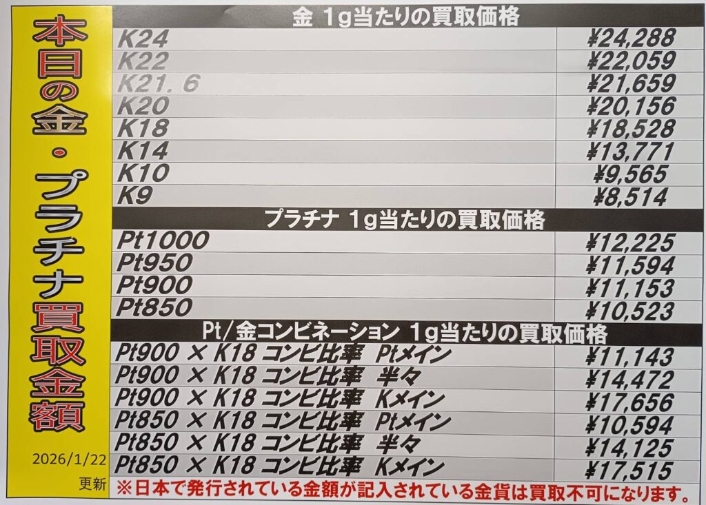 【鹿児島店 換金 買取情報】 金・プラチナ買取価格です! 相場状況により…