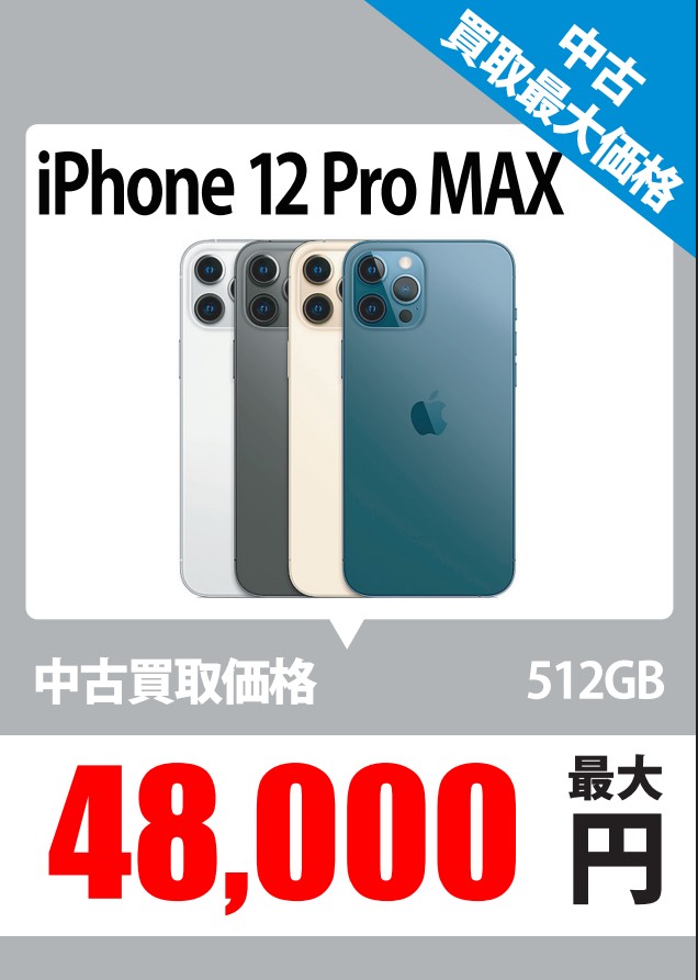 【鹿児島店 iPhone 買取情報】 iPhone 12 Pro Max 512GB 中古上限 48,000…