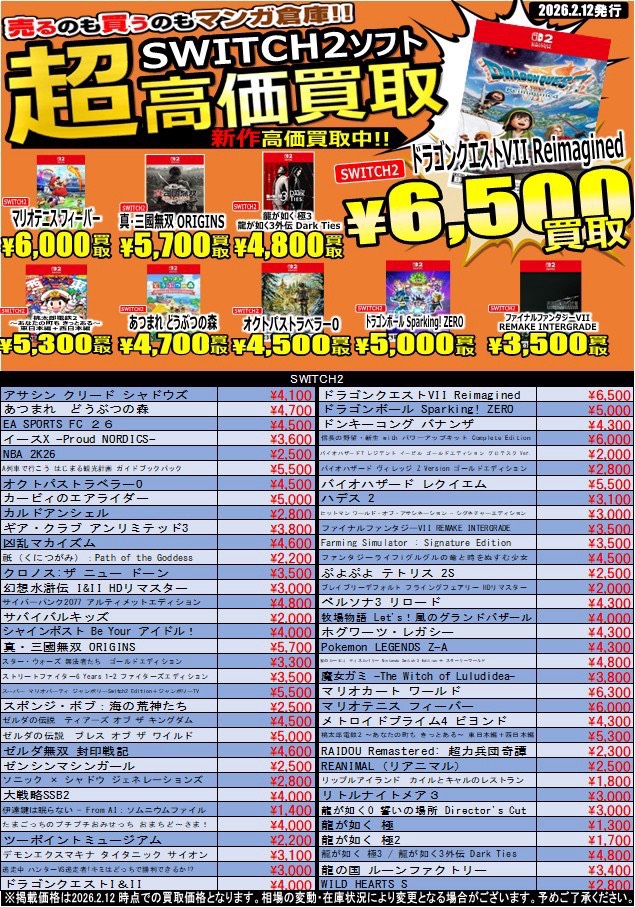 【鹿児島店 ゲーム 買取情報】 買取価格更新しました❗️ Switch・Switch2…