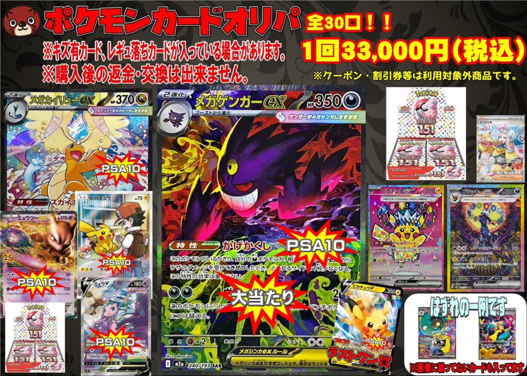 【鹿屋店 カード 買取情報】 ⭐ポケモンカードオリパ⭐ 1回33000円…